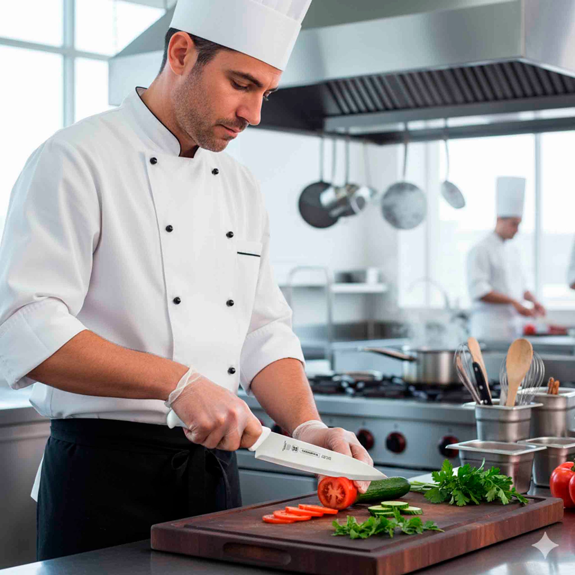 Ideal para cortes sobre tablas, gracias al filo libre en toda su extensión. La lámina es resistente, afilada y durable. La lámina de acero inoxidable especial está tratada térmicamente con un proceso subcero, que garantiza niveles de dureza promedio de 56 HRc. El desbaste cónico en el espesor es adecuado para cada aplicación, lo que garantiza precisión y durabilidad en el hilo de corte. El mango es anatómico, higiénico y seguro. El mango es de polipropileno texturizado, que ofrece mayor confort y seguridad en el manejo. El mango está inyectado directamente sobre la espiga, lo que asegura una perfecta fijación y evita la retención de residuos. El mango con protección antimicrobiana inhibe el crecimiento de hongos y bacterias, proporcionando beneficios relacionados con la higiene y la reducción de microorganismos que causan la contaminación.