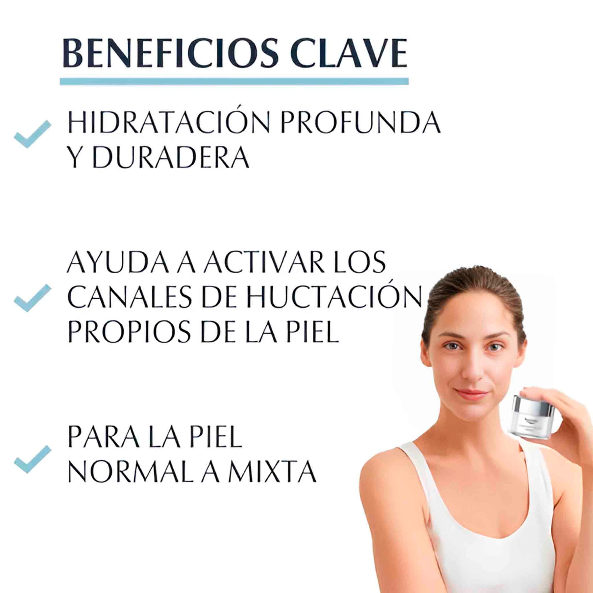 Eucerin Aquaporin Active 50 ml entrega una hidratación intensa y duradera especialmente formulada para piel normal a mixta. Su tecnología inspirada en los propios canales de hidratación de la piel ayuda a mejorar la circulación de agua entre las células, aportando suavidad, confort y equilibrio desde la primera aplicación.