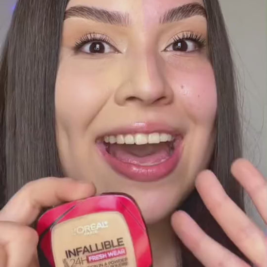 El polvo compacto Infaillible 24H Fresh Wear de L’Oréal Paris ofrece una cobertura total con un acabado mate fresco que se mantiene impecable durante todo el día. Su fórmula ligera y resistente ha sido diseñada para unificar el tono, controlar el brillo y dejar la piel suave sin perder naturalidad, logrando un efecto perfeccionador inmediato.
